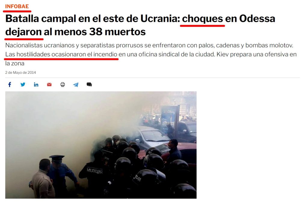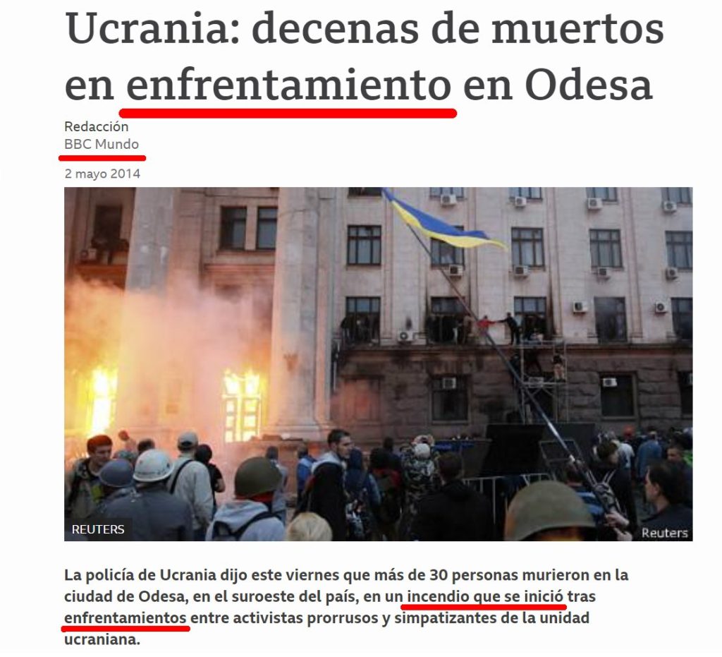 Aquí, en nuestro país, los mismos medios que os están diciendo lo malos que son los rusos y que debéis salir a la calle a protestar contra esta guerra a día de hoy, son los mismos que tras esos hechos publicaban los siguientes titulares : “MAS DE 50 MUERTOS EN CHOQUES CON LOS SEPARATISTAS PRORRUSOS”