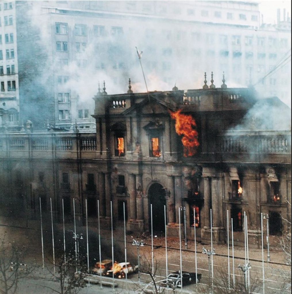 Ejemplo histórico claro en la historia chilena reltivame reciente es el Golpe de Estado en Chile de 1973, donde las cúpulas de las Fuerzas Armadas, al mando de Augusto Pinochet, derrocaron por la fuerza al presidente Salvador Allende y Gobierno de la Unidad Popular, bombardeando el Palacio de La Moneda, tras un largo camino de conspiraciones militares y oligárquicas iniciadas aún antes de comenzar su mandato, y con la protagónica injerencia del aparato imperial estadounidense.