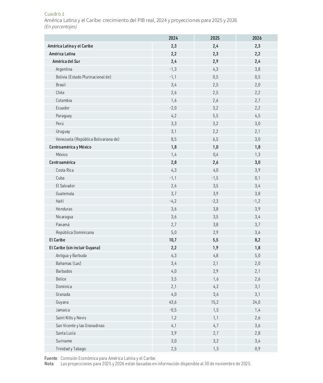 El informe de la CEPAL pinta así un mapa económico heterogéneo, donde el notable repunte de Venezuela destaca en un contexto general de expansión baja y persistentes limitaciones estructurales para el conjunto de América Latina y el Caribe.